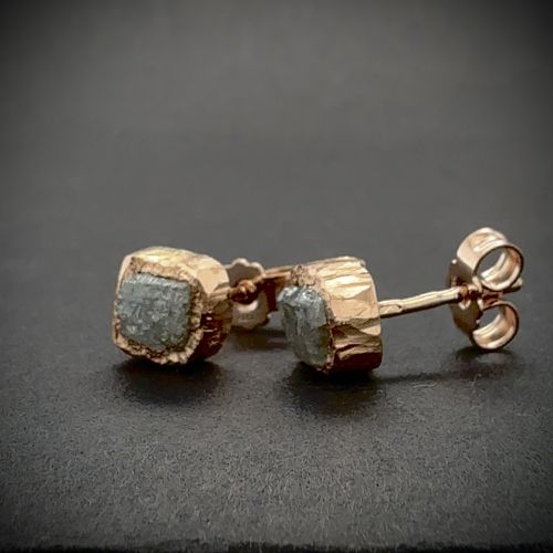 -Ihned k odběru- Náušnice z růžového zlata s Raw diamanty Cube