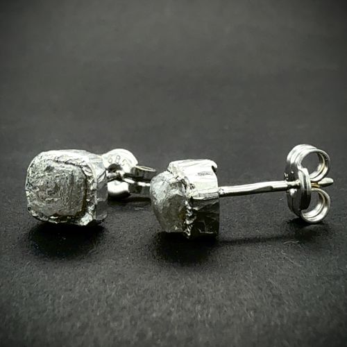 -Ihned k odběru- Náušnice z bílého zlata s Raw diamanty Cube