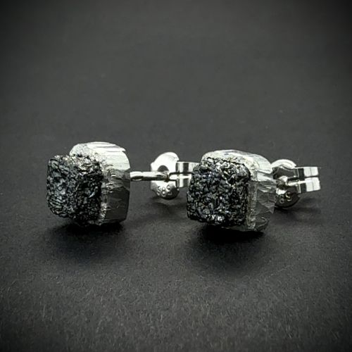 -Ihned k odběru- Náušnice z bílého zlata s černými Raw diamanty Cube