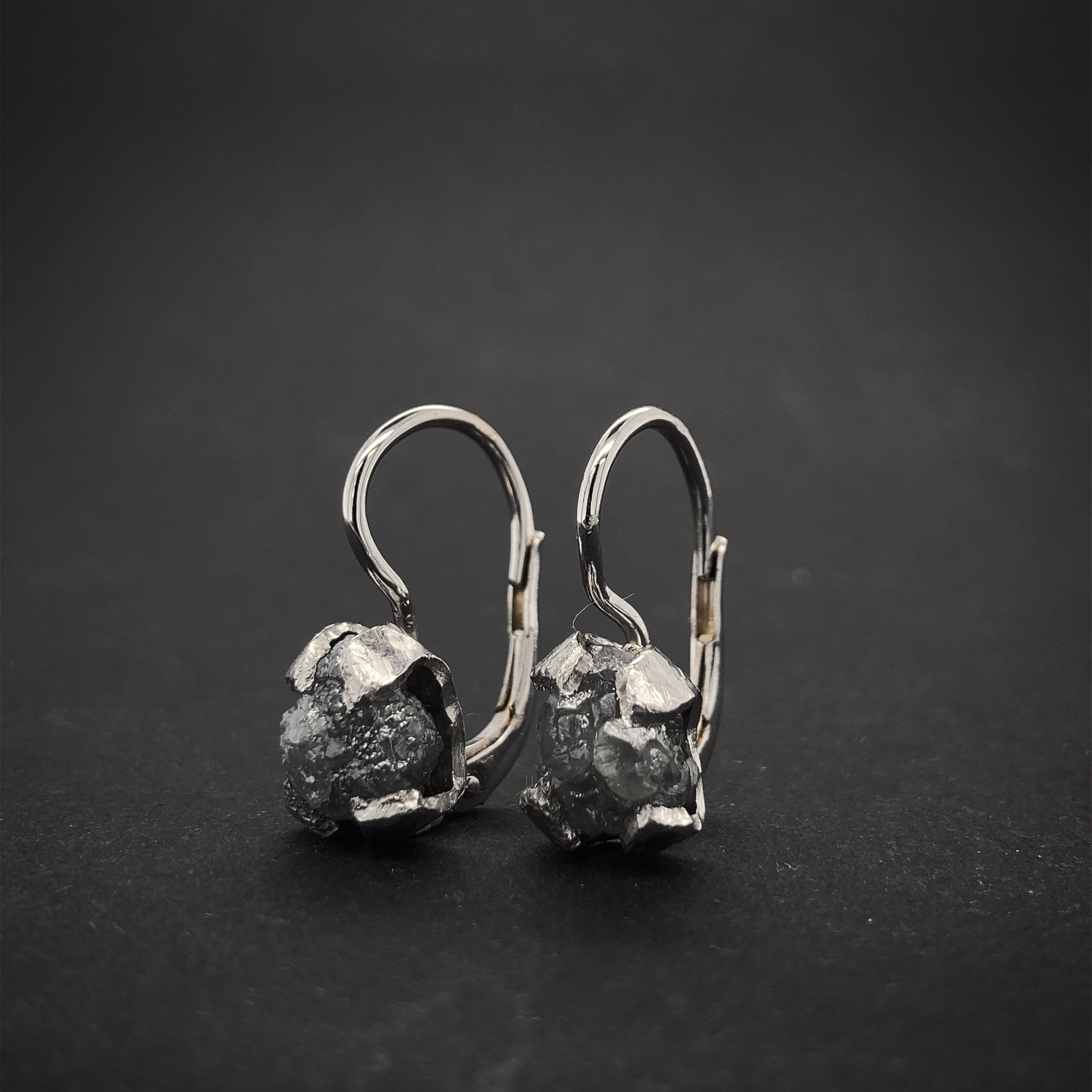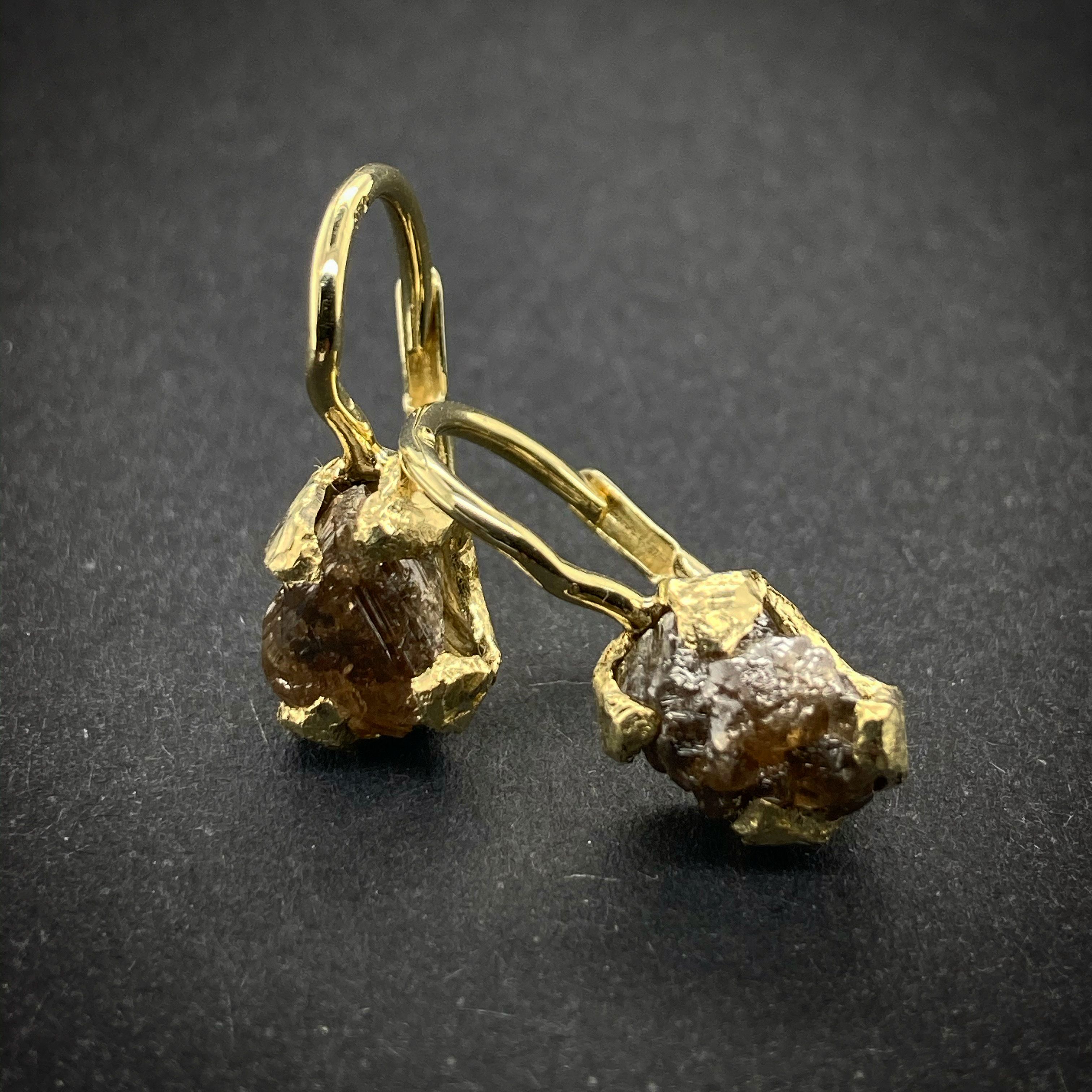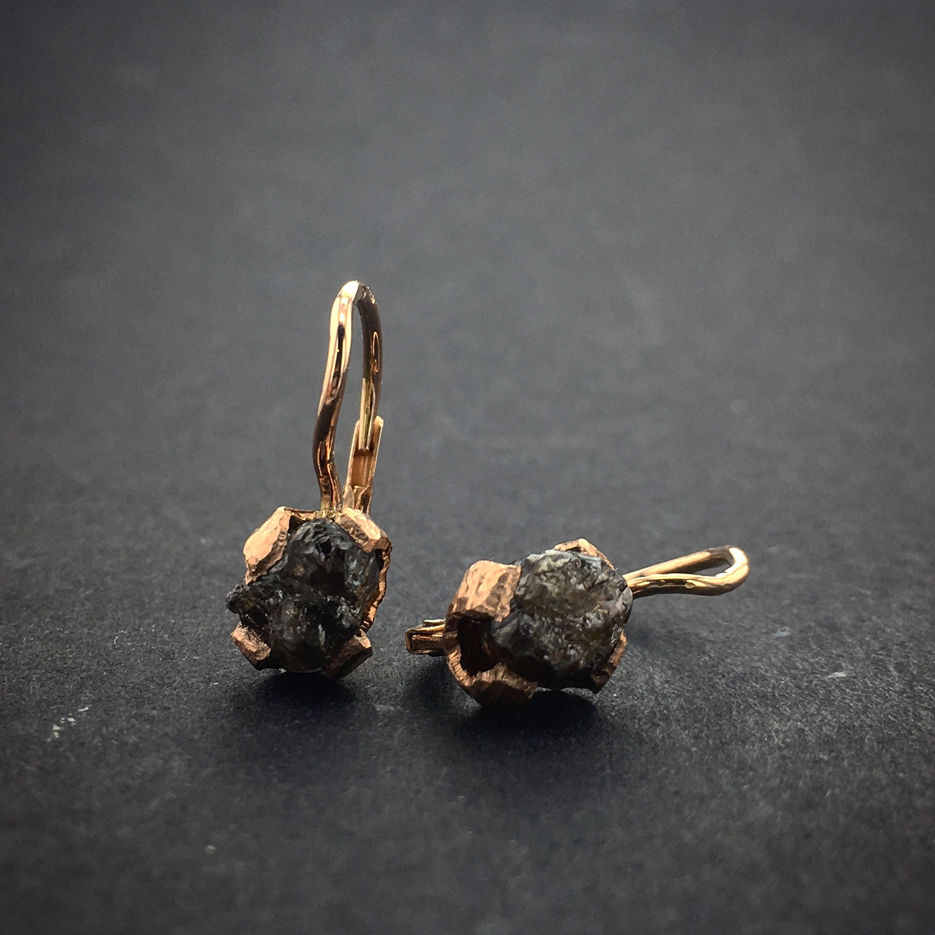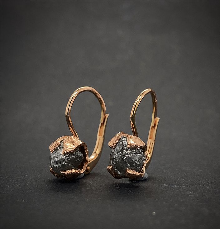 Velmi elegantní ručně vyráběné náušnice s Raw/surovýmidiamanty, každý diamant je vždy tvarem a barvou originální. Lze tak použít barevně černé, šedé nebo tmavě hnědé diamanty. Zapínání jde upravit tak, že lze dodělat "zámečky" které zabrání ztrátě náušnic při každodenním nošení. Náušnice jsou vyráběny ze zlata o ryzosti 14karátů (585/000).