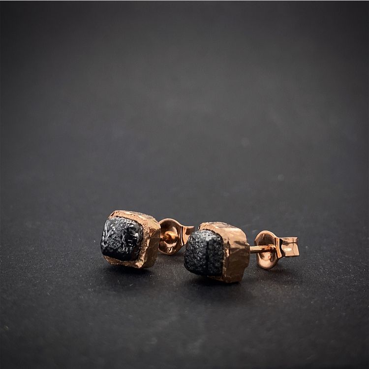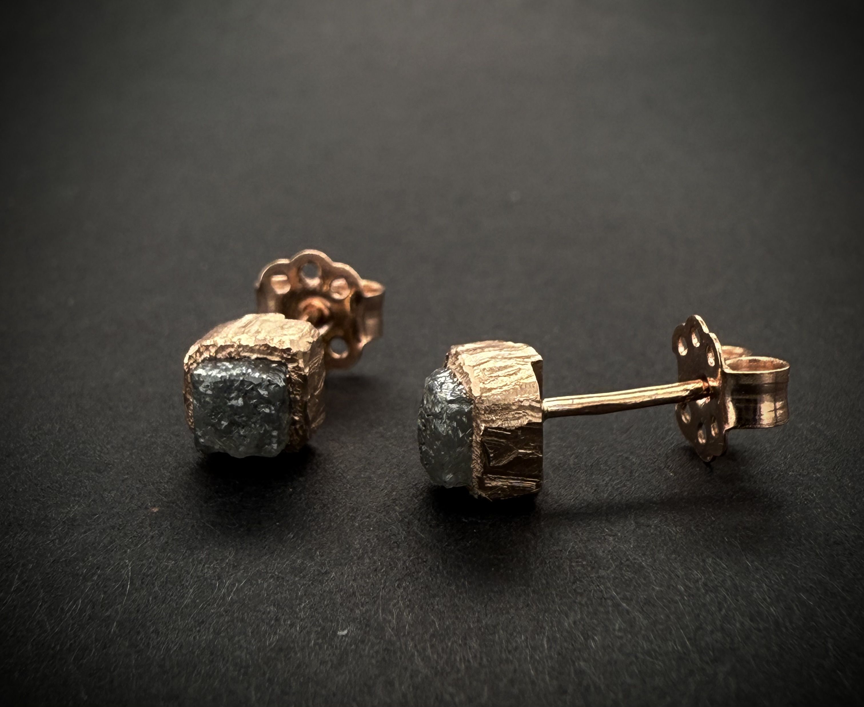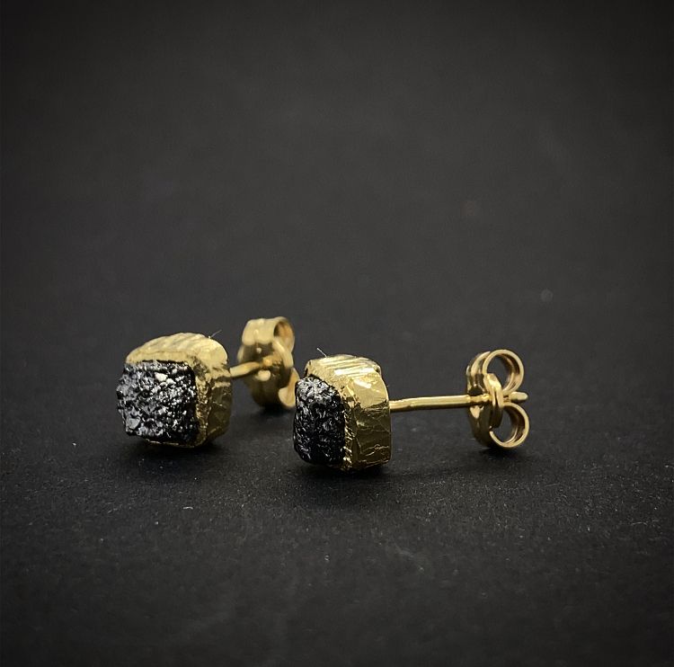 Elegantní náušnice s Raw/surovými diamanty ve tvaru kostiček o velikosti cca 4x4mm na zapínání na zastrčení ze zlata 585/000 (14karátů).