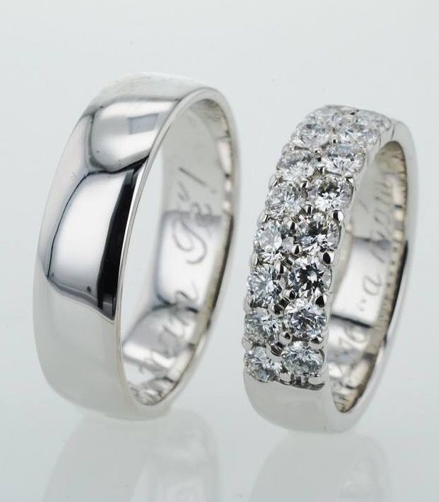 Luxusní snubní prsteny v lesklém provedení a v zaobleném profilu. V dámském prstenu je vsazeno 16ks kamenů o velikosti 2,50mm. Šířka obou prstenů je 5mm. Šířka pánského prstenu lze zvolit níže v konfigurátoru.