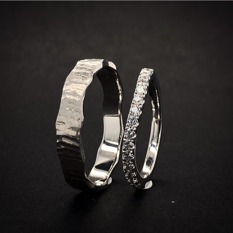 Na první pohled jsou tyto prsteny stejné jako modely 12/H+14/H pánský ano ale dámský prsten je v šířce 2mm a kameny o velikosti 1,70mm v počtu 15ks je tak o něco robustnější a výraznější i díky elegantnímuzvlnění. Lze udělat i v rovném provedení bez zakřivení a libovolným počtem kamenů.