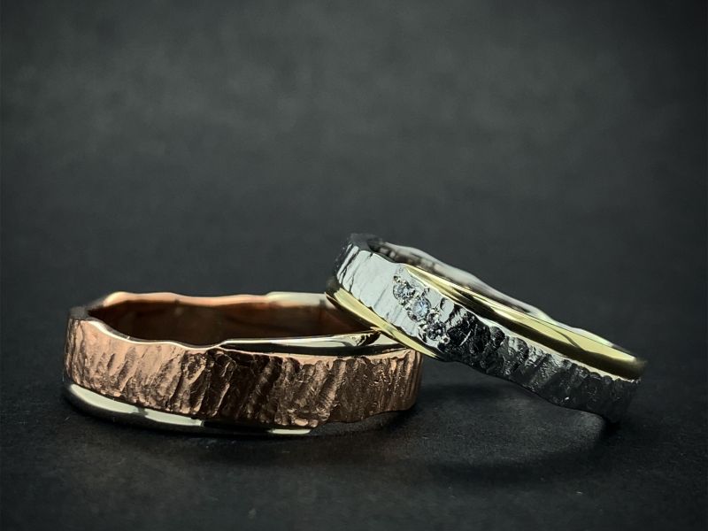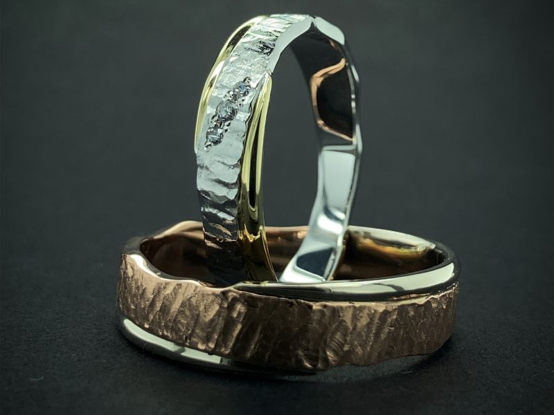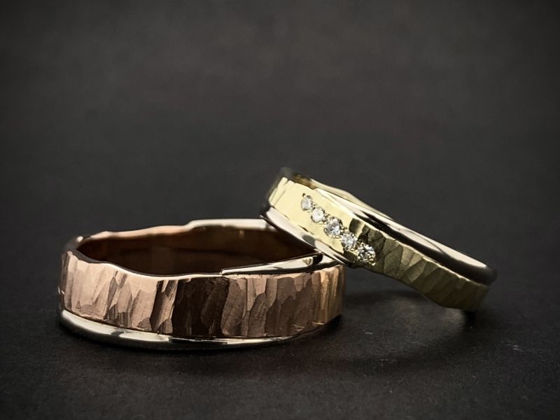 Snubní prsteny podobné předchozímu modelu 3/HF, které se liší ve svéjedinečnosti obohacené o boční nerovnou hranu a jsou celkově širší ve středové části - v nejširším místě má pánský prsten šířku 5,50mm a dámský 4,30mm něco pro milovníky výraznějších prstenů. Lze změnit i barevnou kombinaci zlata, kterou mi můžete napsat do speciálního požadavku. V dámském prstenu jsou usazeny kameny 2x 1,20mm a 1x 1,50mm pro nezničitelnost kamenů vždy doporučuji diamanty vzhledem jejich tvrdosti a odolnosti.