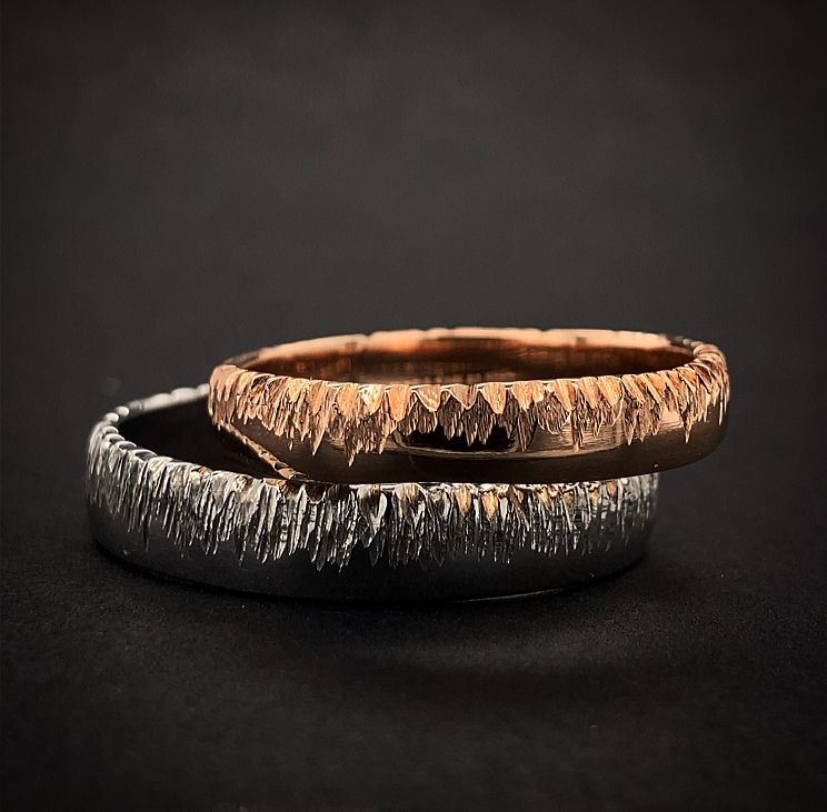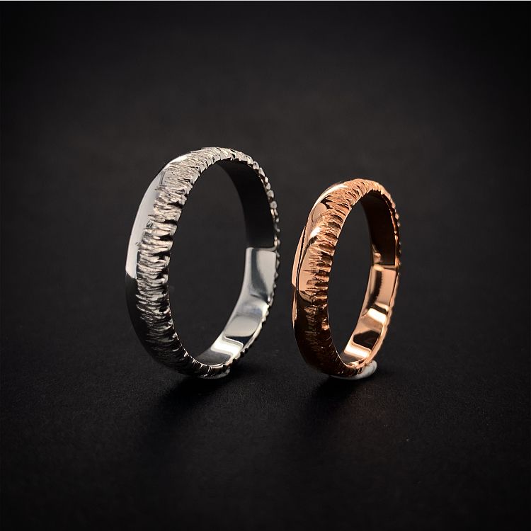 U těchto snubních prstenů jsem chtěl otisknout trochu vrcholy hor nebo krásu lesa ale každý si najde to svoje nicméně pokud zvolíte tyto netradiční snubní prsteny tak budete vždy spojeni s přírodou.