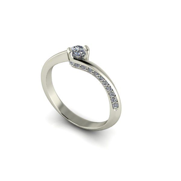 Pro milovníky praktických prstenů jsem vyrobil tento zásnubní prsten, kde nic netrčí a nic nezadrhne. Momentálně je to můj bestseller. V prstenu je vsazen centrální kámen o velikosti 3,50mm a 24ks postranních kamenů o velikosti 1,20mm.
