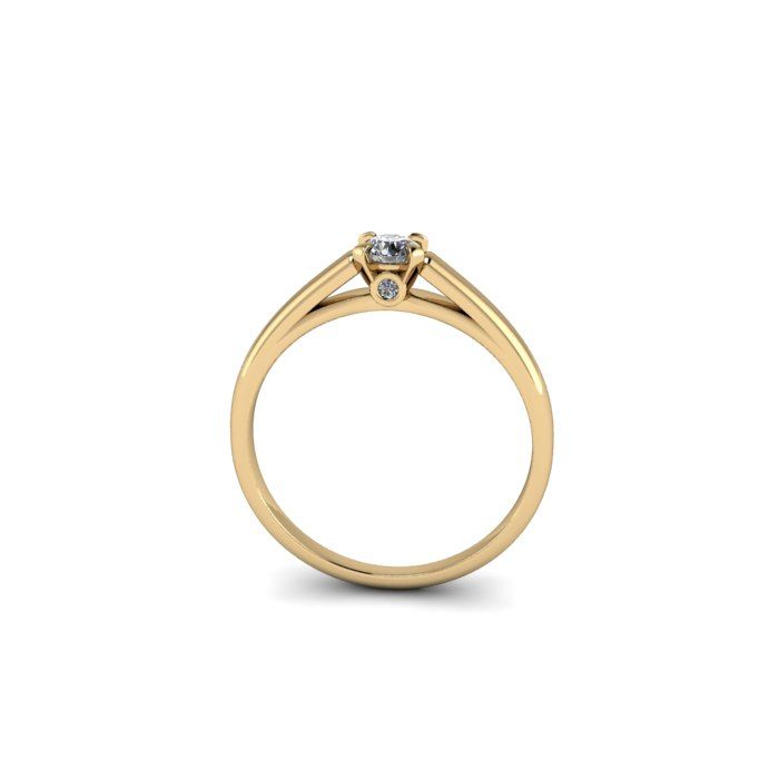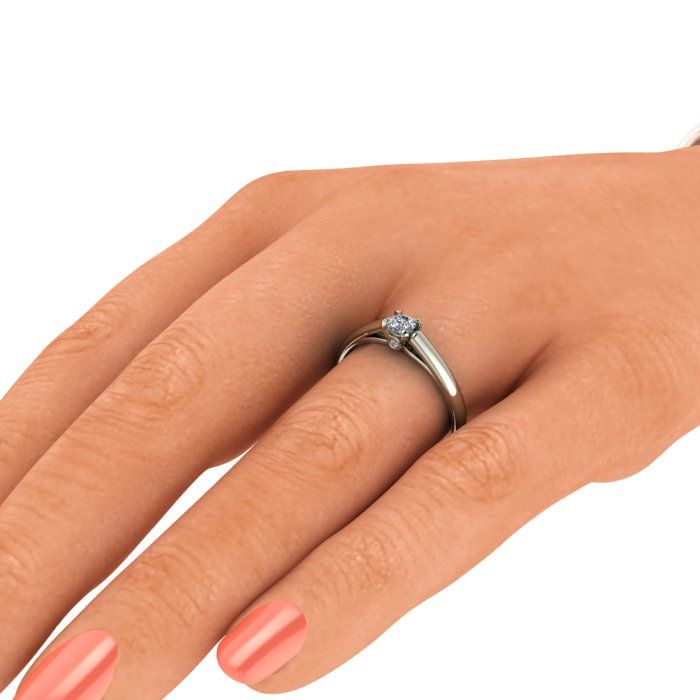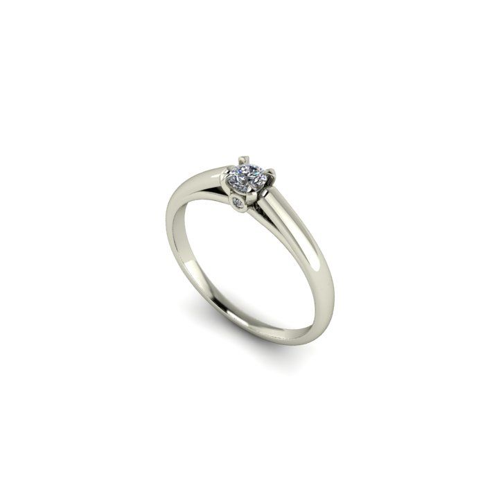 Klasičtější zásnubní prsten, který je zdobený centrálním kamenem o velikosti 3,50mm a bočními kameny o velikosti 1,20mm.