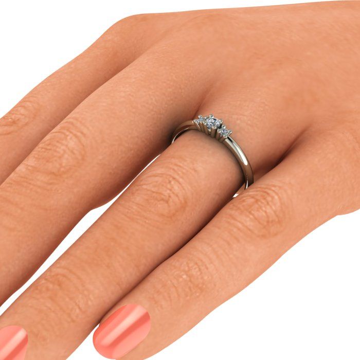 Jeden s těch klasičtějších modelů zásnubního prstenu, který zdobí tři kameny, větší centrální o velikosti 3mm a boční o velikosti 2mm.