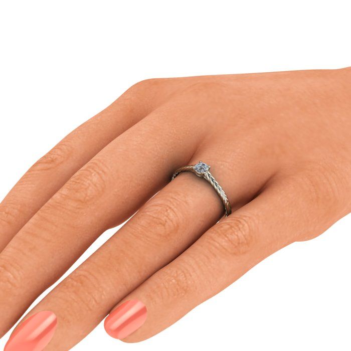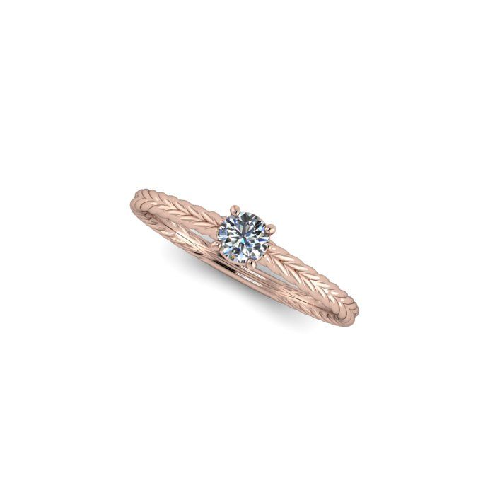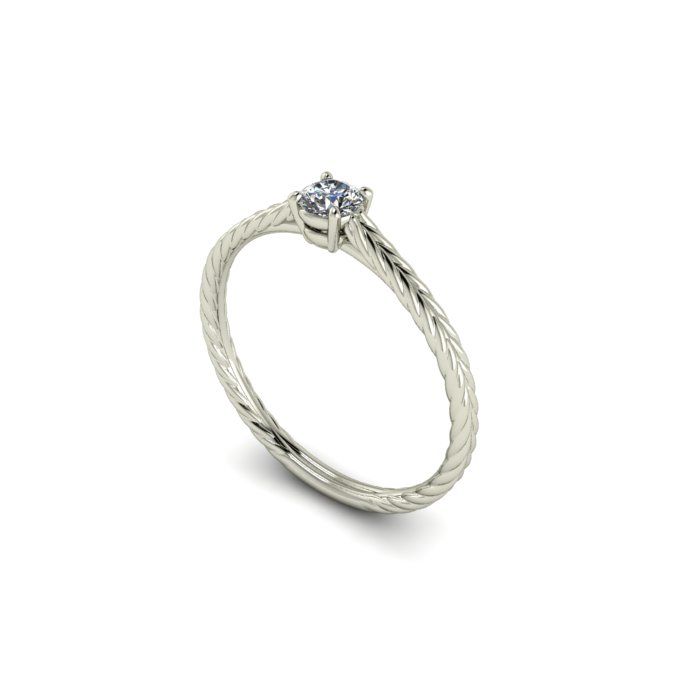 Originální zásnubní prsten se vzorovanou šínou ve stylu lana. Prsten zdobí jeden centrální kámen o velikosti 3,50mm