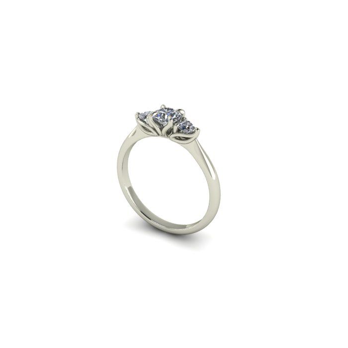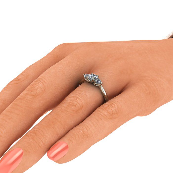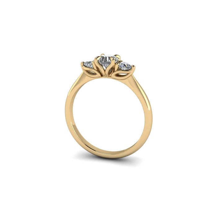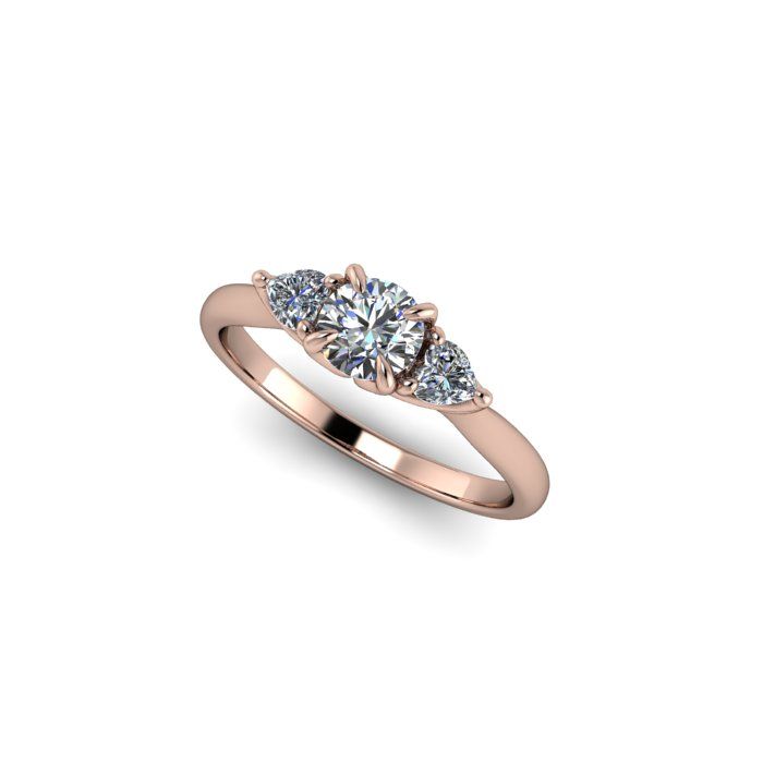 Elegantní prsten zdobený centrálním kulatým kamenem o velikosti 4,75mm a bočními kameny ve tvaru srdíčka. V úpravách parametrů si zvolte barvu zlata a volbu kamenů.