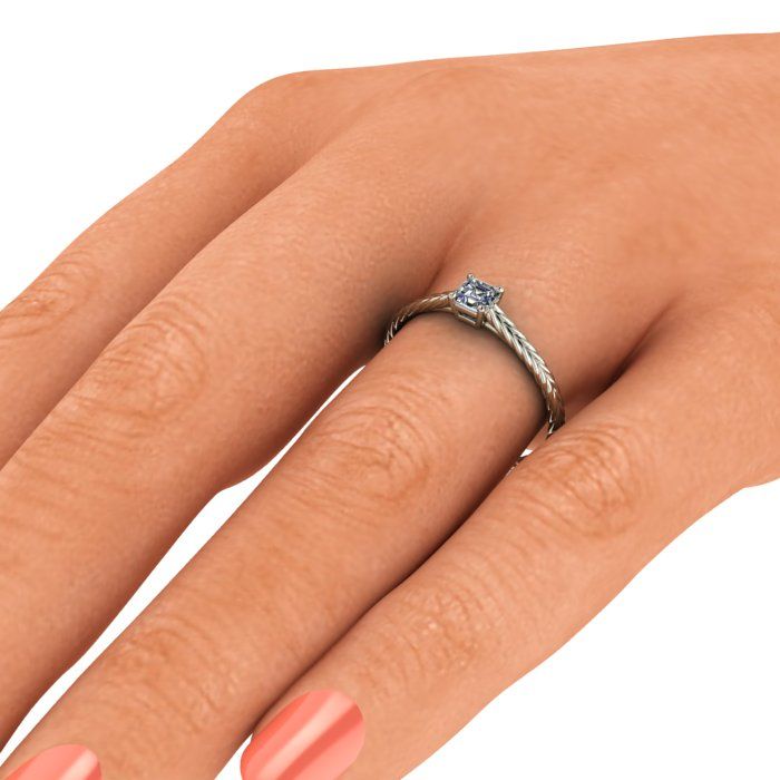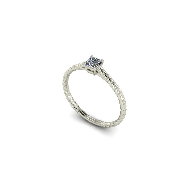 Originální zásnubní prsten se vzorovanou šínou ve stylu lana. Prsten zdobí jeden centrální kámen ve tvaru osmihran o velikosti 3,50 x 3,50mm